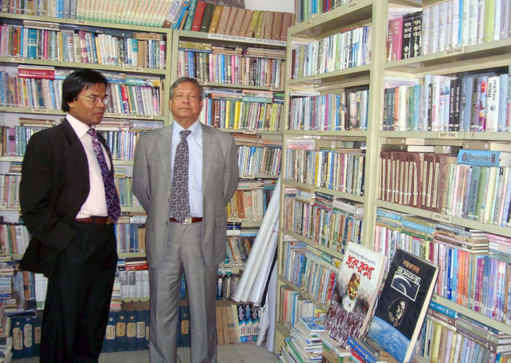 ক্যাম্পাস লাইব্রেরি দেখাচ্ছেন বিইউবিটি’র চেয়ারম্যান প্রফেসর ড. শফিক আহমেদ সিদ্দিকীকে (২০১১)