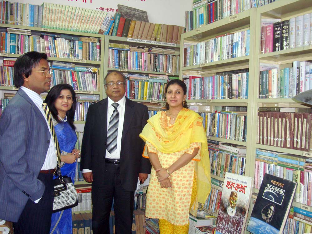 ক্যাম্পাস লাইব্রেরি দেখাচ্ছেন বাংলাদেশ ওমেন এন্ট্রেপ্রেনার্স এসোসিয়েশন এর ফাউন্ডার প্রেসিডেন্ট নাসরিন আউয়াল মিন্টু এবং পারসোনা গ্রুপ এর ফাউন্ডার কানিজ আলমাস খানকে (২০০৮)
