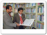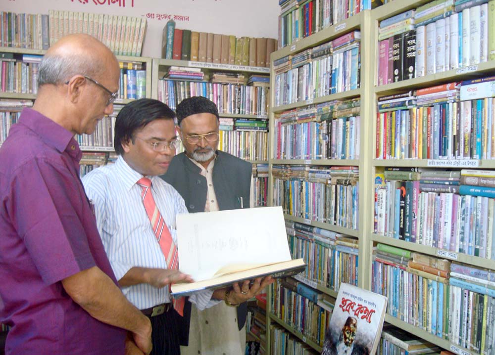 ক্যাম্পাস লাইব্রেরির দুর্লভ সংগ্রহ দেখাচ্ছেন সরকারের শিক্ষামন্ত্রী নুরুল ইসলাম নাহিদকে (২০১০)