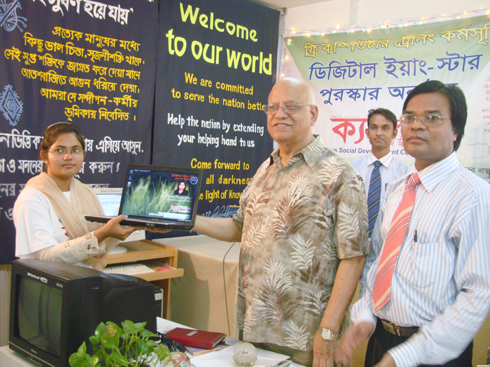 ক্যাম্পাস আয়োজিত ডিজিটাল স্টারদের কম্পিউটার প্রদান অনুষ্ঠানে প্রধানমন্ত্রীর আন্তর্জাতিক বিষয়ক উপদেষ্টা ড. গওহর রিজভী এর সাথে (২০১০)