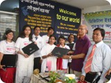 ডিজিটাল স্টারদের কম্পিউটার প্রদান অনুষ্ঠানে ইউনিক গ্রুপ এর ফাউন্ডার মোহাঃ নূর আলী এবং পরিচালক সেলিনা আলী এর সাথে (২০১১)