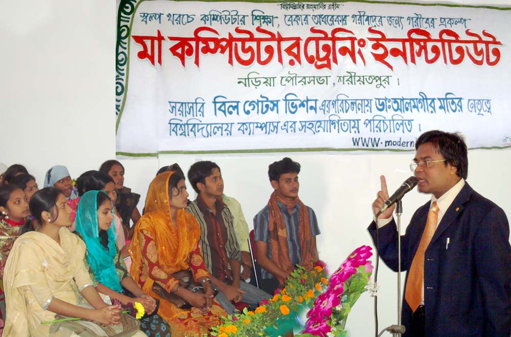 শরিয়তপুরে মা কম্পিউটার ট্রেনিং ইনস্টিটিউটের উদ্বোধনী অনুষ্ঠানে বিশেষ অতিথি হিসেবে বক্তৃতা করছেন (২০১১)