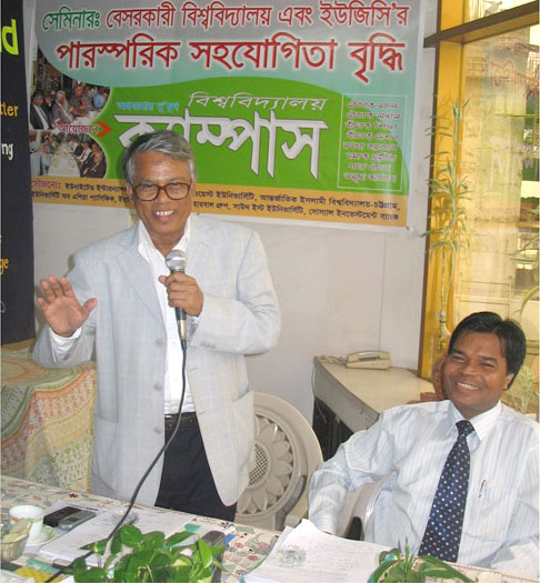 ক্যাম্পাস আয়োজিত সেমিনারে আইনমন্ত্রী ব্যারিস্টার মওদুদ আহমেদ এবং ইউজিসি চেয়ারম্যান ড. আসাদুজ্জামানের সাথে (২০০৬)
