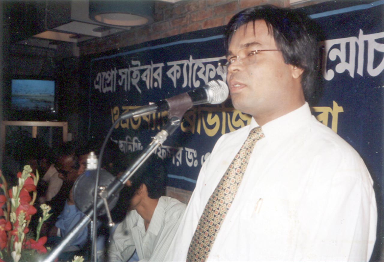 এপ্রো সাইবার ক্যাফে এর উদ্বোধনী অনুষ্ঠানে বক্তৃতা করছেন (৯০’র দশকে)