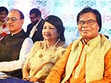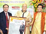 স্বপ্নকথা সাহিত্য পরিষদের অনুষ্ঠানের বিশেষ অতিথি ড. হেলাল। পাশে প্রধান অতিথি স্থানীয় সরকার মন্ত্রী তাজুল ইসলাম ও বিশেষ অতিথি কবি নির্মলেন্দু গুণ (২০১৯)
